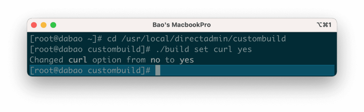 Bước 2: Các lệnh kích hoạt cURL trên DirectAdmin