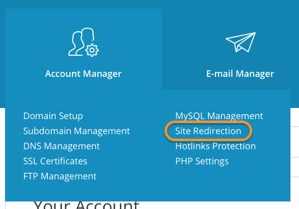 Chúng ta lại rê chuột vào danh mục Account Manager và chọn tính năng Site Redirects.