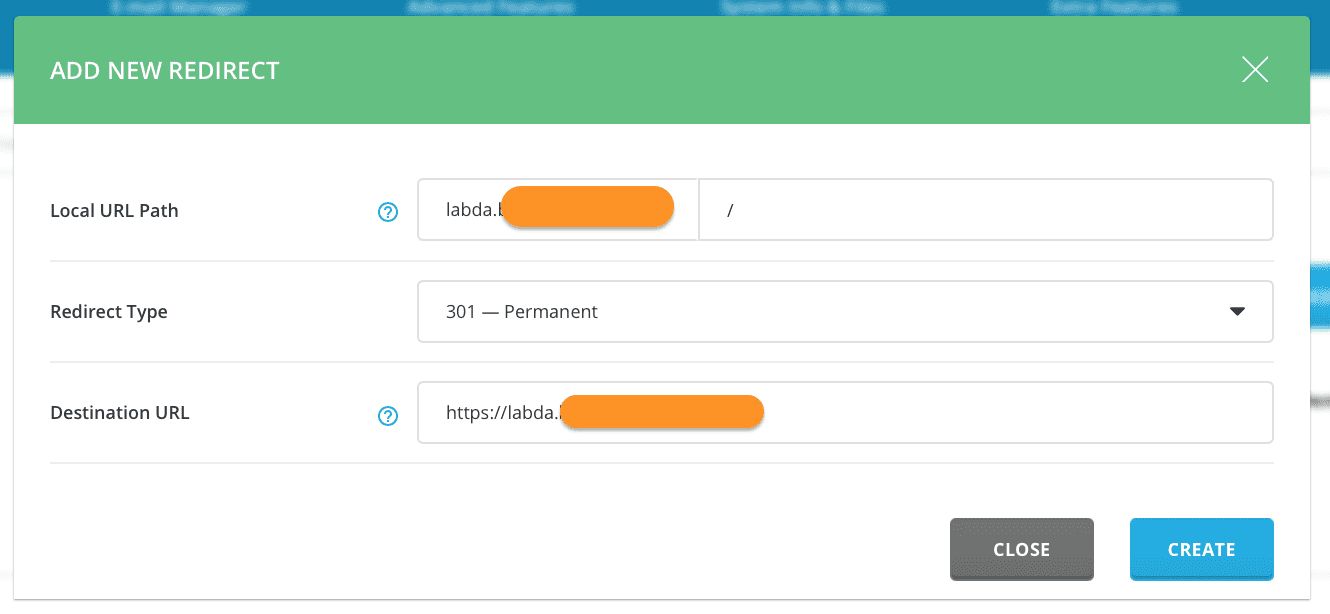 Tại đây bạn chỉ cần điền lại tên miền của mình dạng https://YOURDOMAIN.COM ở ô Destination URL sao đó chọn CREATE là được.