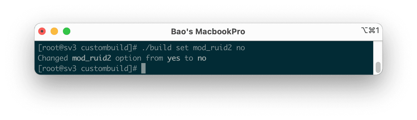 • ./build set mod_ruid2 no : Tắt mod_ruid2 vì mod_ruid2 chỉ hoạt động với Apache.