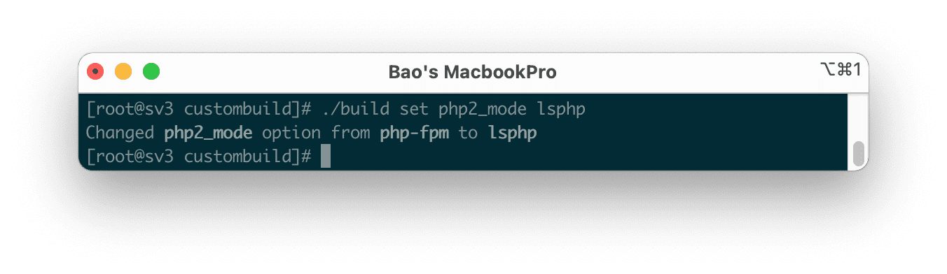 • ./build set php2_mode lsphp : Chỉnh chế độ phiên bản PHP2 về lsphp.