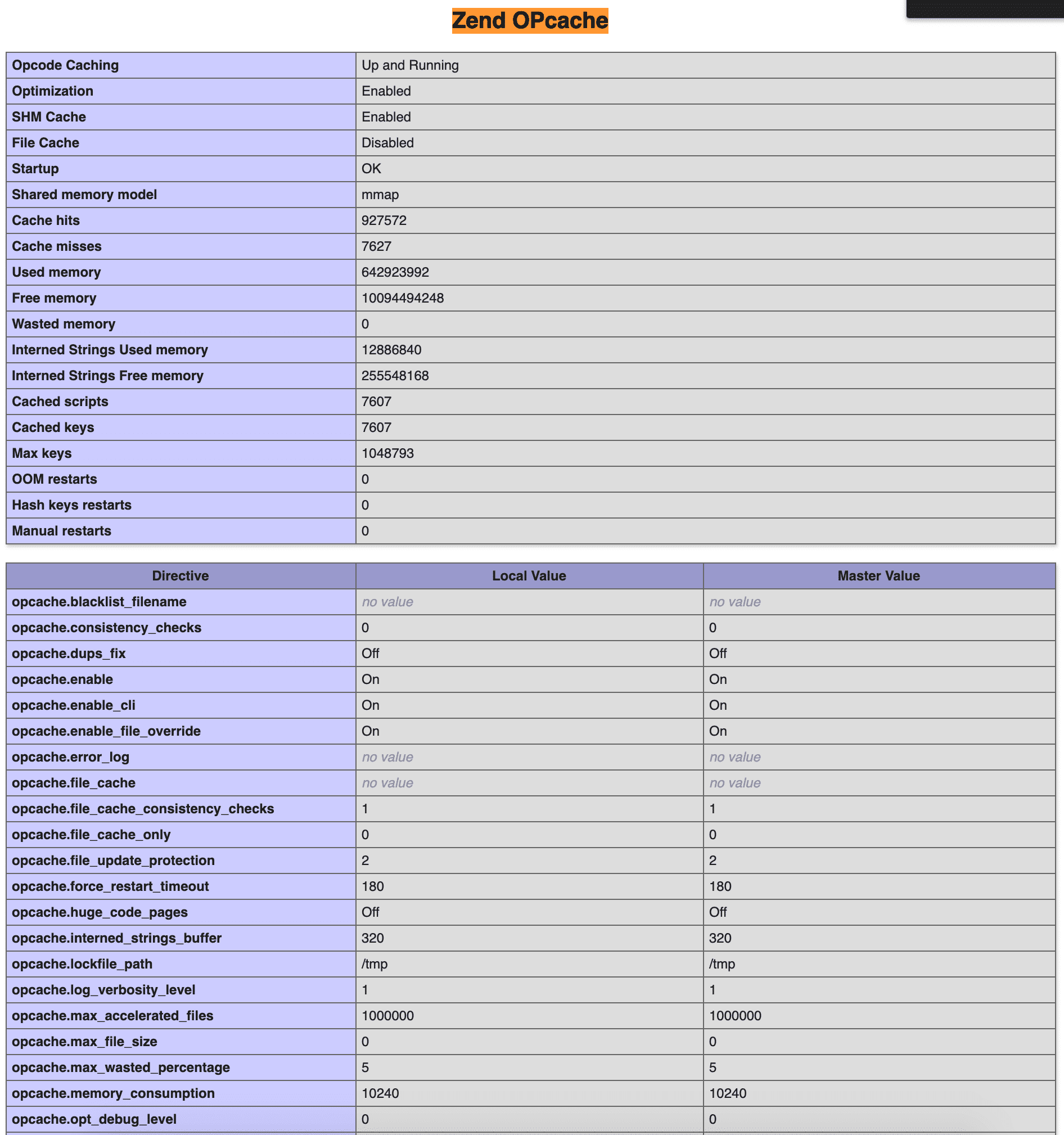 opcache.memory_consumption => 10240 => 10240