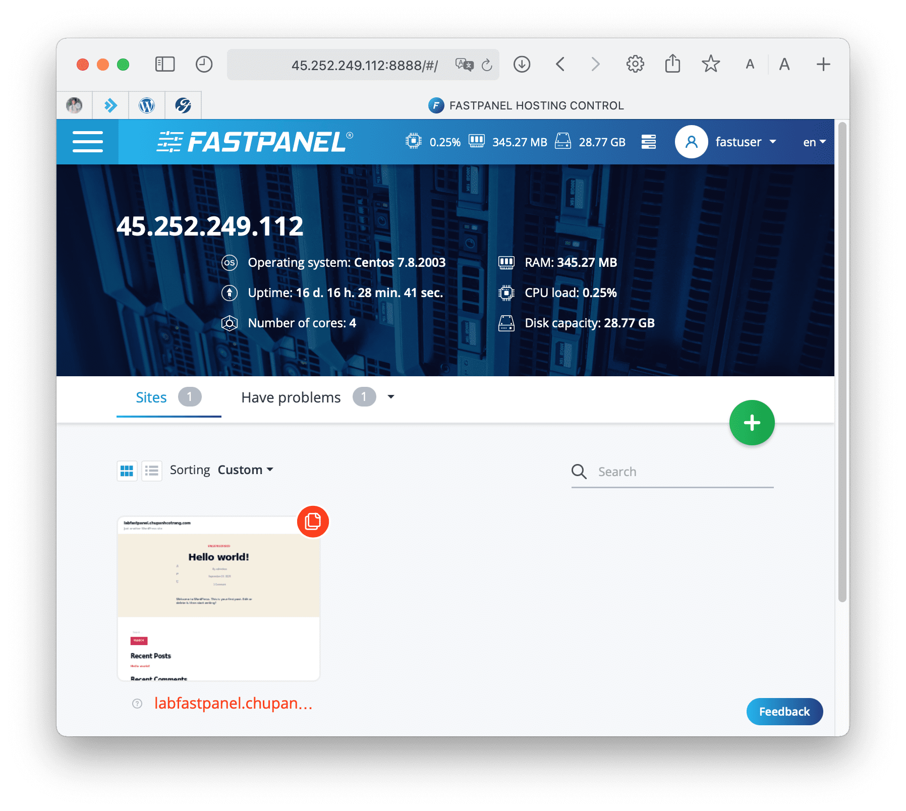Dưới đây là một số hình ảnh giao diện sử dụng FASTPANEL.