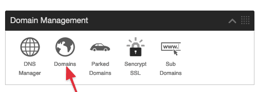 Tương tụ với thêm Addon Domain ,Trong Domain Management bạn Click vào Domains để bắt đầu thêm một Alias Domain mới nhé.