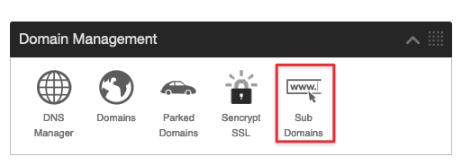 Trong Domain Management bạn Click vào Sub Domains để bắt đầu thêm một Sub Domain mới nhé.