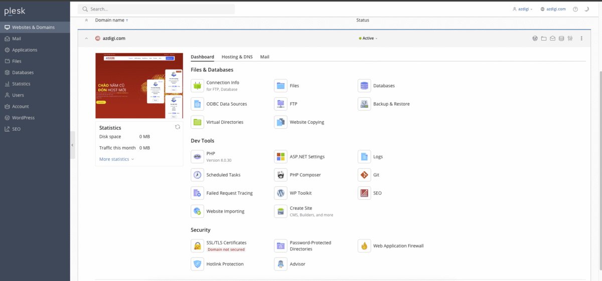 - Bảo Mật Mạnh Mẽ: Plesk tích hợp các tính năng bảo mật như chống virus, tường lửa và hỗ trợ chứng chỉ SSL, bảo vệ máy chủ khỏi các mối đe dọa.