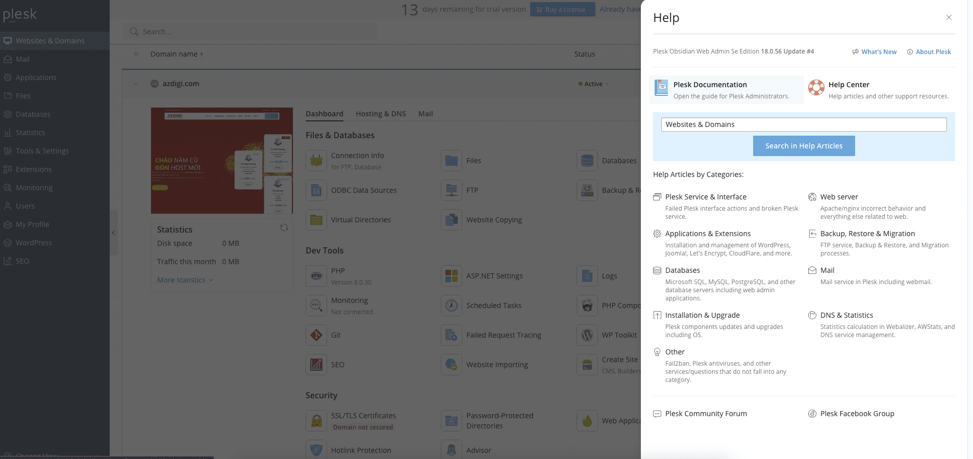 - Tài Nguyên Hướng Dẫn: Cung cấp tài liệu hướng dẫn và hỗ trợ trực tuyến để giúp người dùng giải quyết vấn đề và tận dụng đầy đủ tính năng của Plesk.