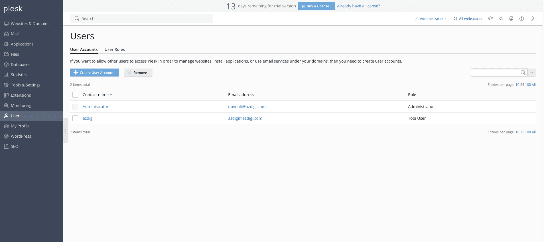 - Học Phí: Mặc dù giao diện thân thiện, nhưng việc học cách sử dụng một số tính năng cụ thể của Plesk vẫn có thể đòi hỏi thời gian và tài nguyên đào tạo.