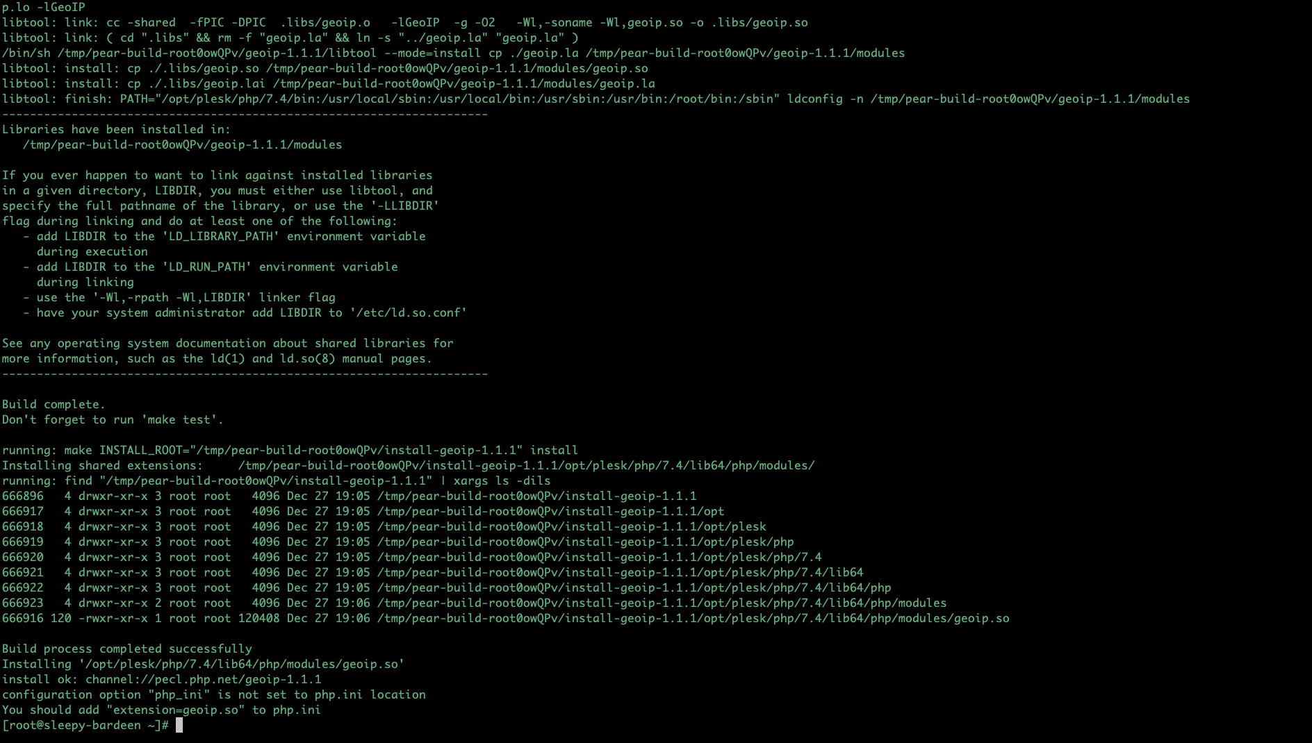 yum install make plesk-php73-devel gcc glibc-devel GeoIP-devel zlib-devel