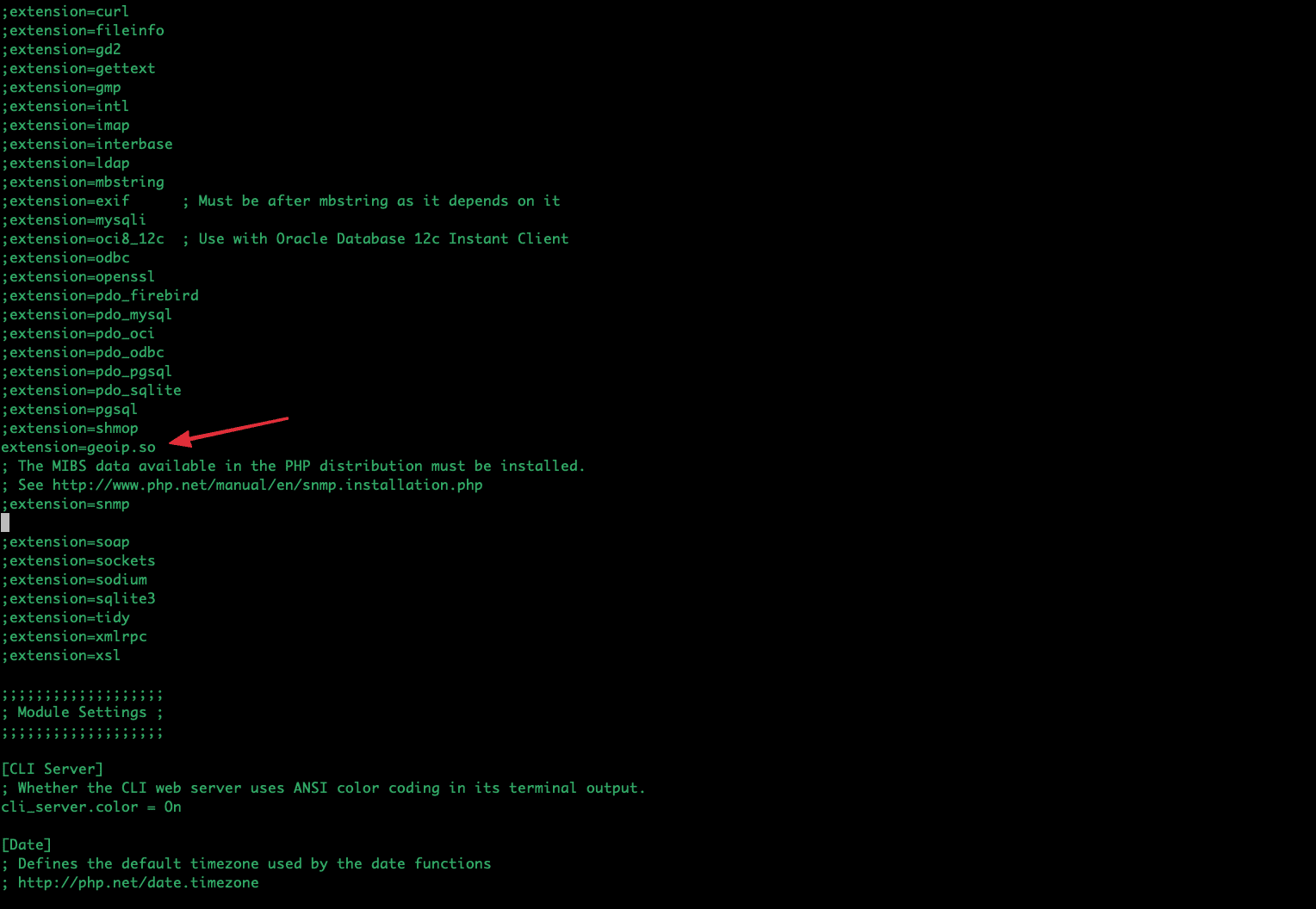 Các bạn mở file php.ini của từng phiên bản lên và thêm dòng “extension=geoip.so” vào file cấu hình :