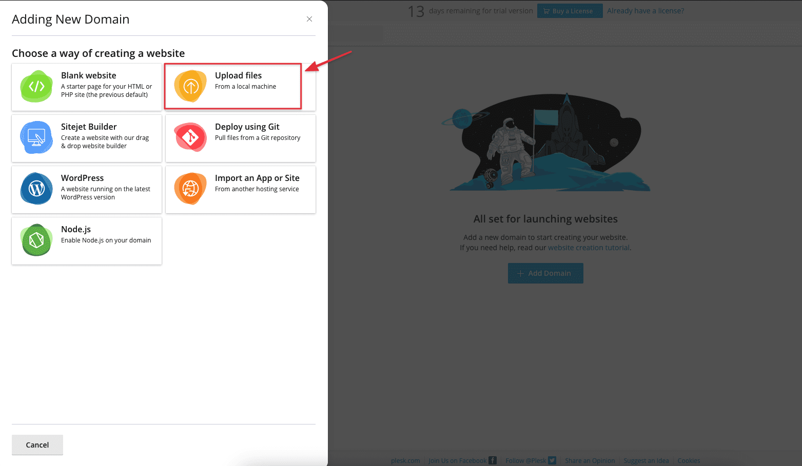 Ở đây bạn chọn “Upload files” để tiếp tục nhé