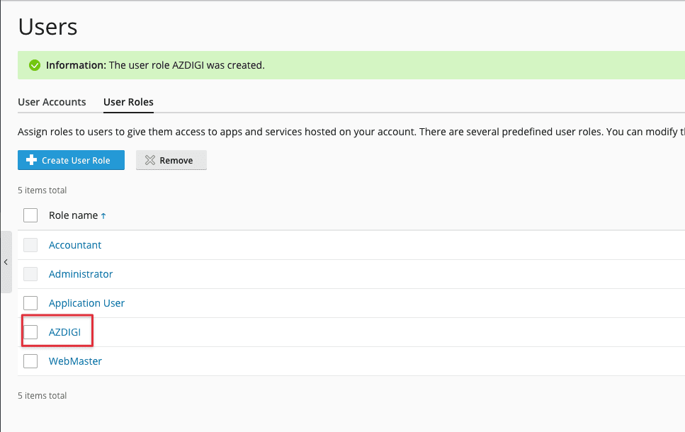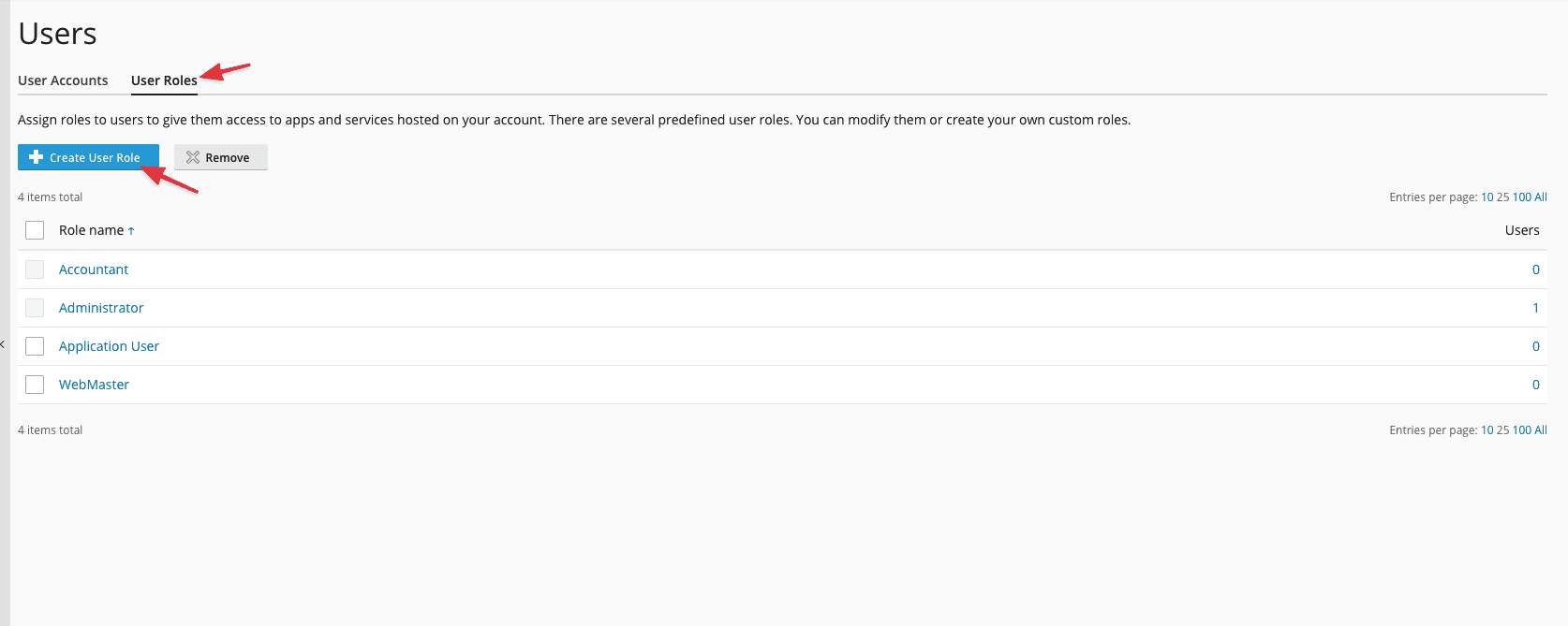 Tiếp theo ở phần User Roles các bạn Click vào Create User Role