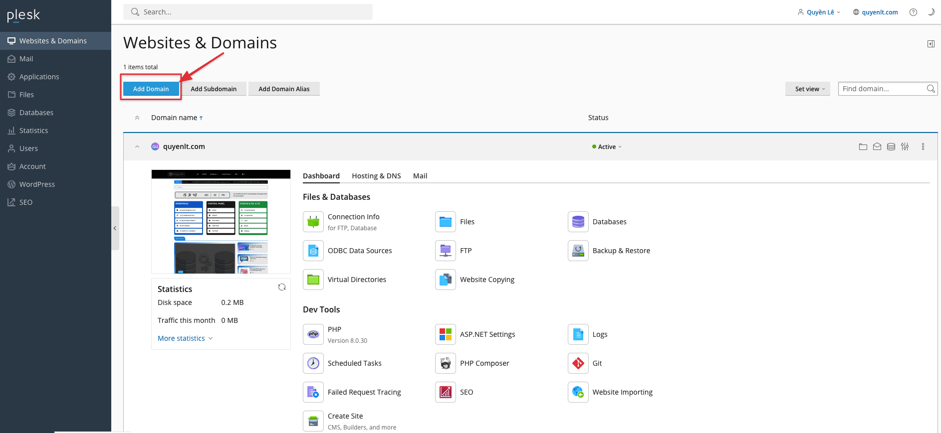 Nếu bạn muốn thêm một domain mới, chọn “Add Domain”.