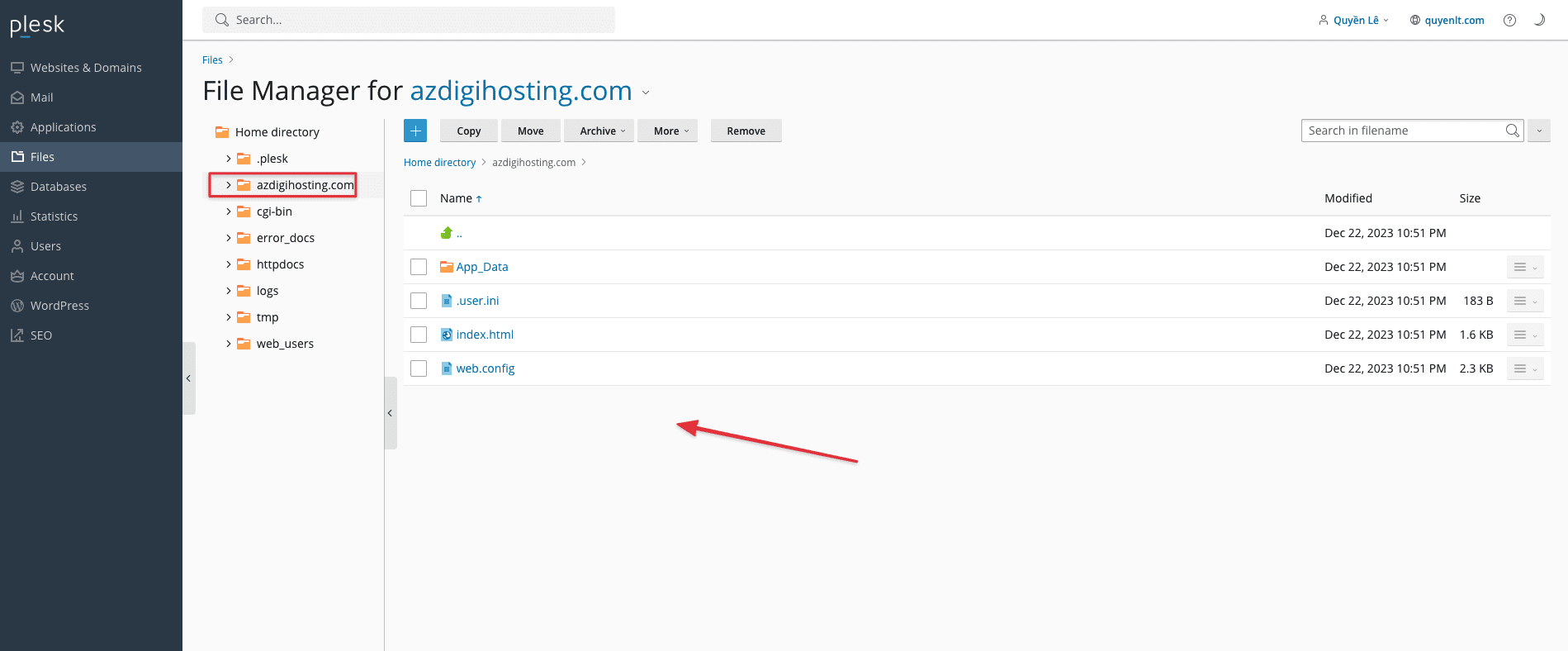 Bước 1 : Đăng nhập vào Plesk