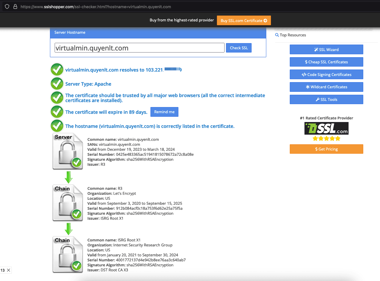 Bước 5 : Kiểm tra chứng chỉ SSL