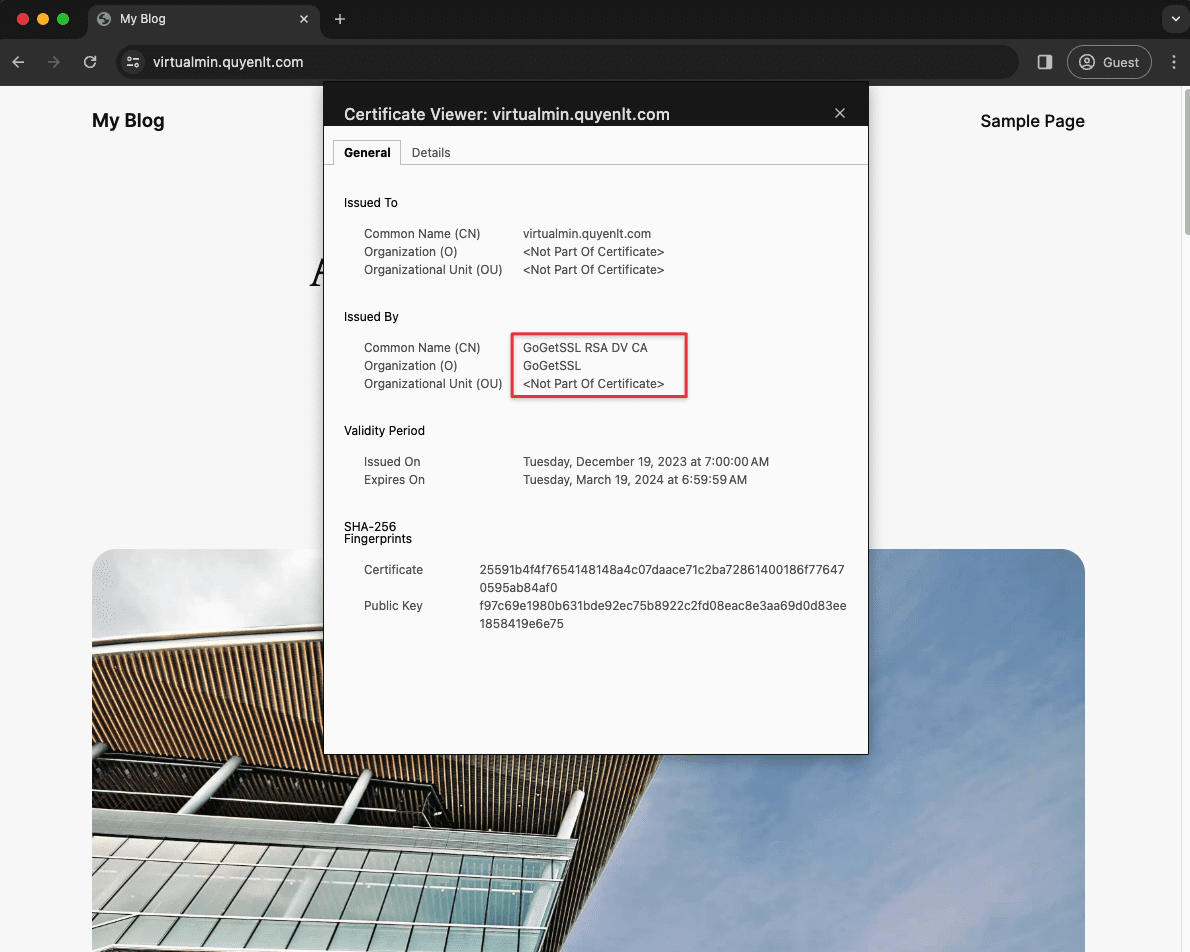 Bước 5 : Kiểm tra chứng chỉ SSL