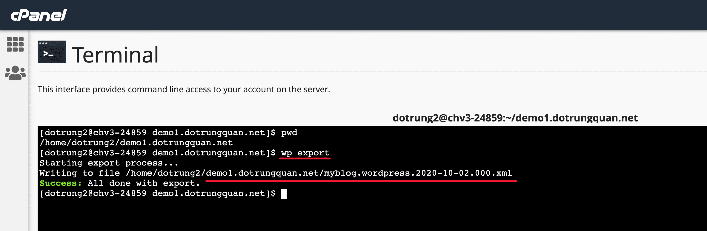 cd demo1.dotrungquan.net wp export