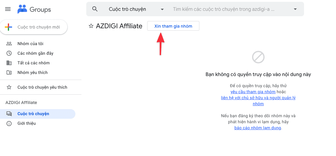 To join the Google Group, please visit https://groups.google.com/g/azdigi-affiliate and click on the “Request to join” button as shown below: