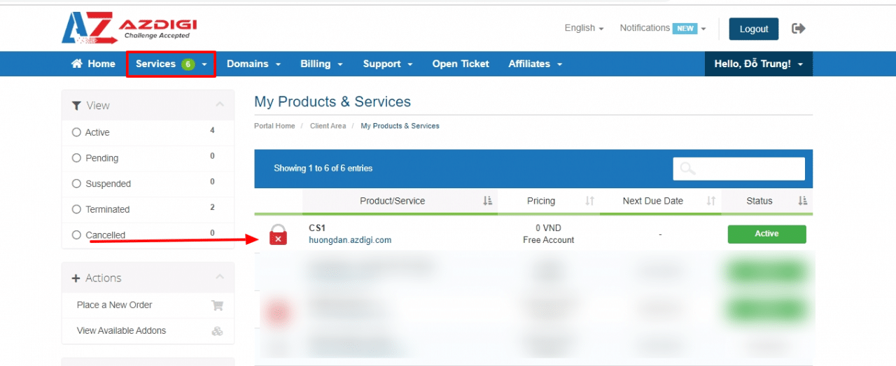 To do this, you definitely have to access your service administration page, the access link will be below, you access it with the email/password you created before buying the service at AZDIGI.