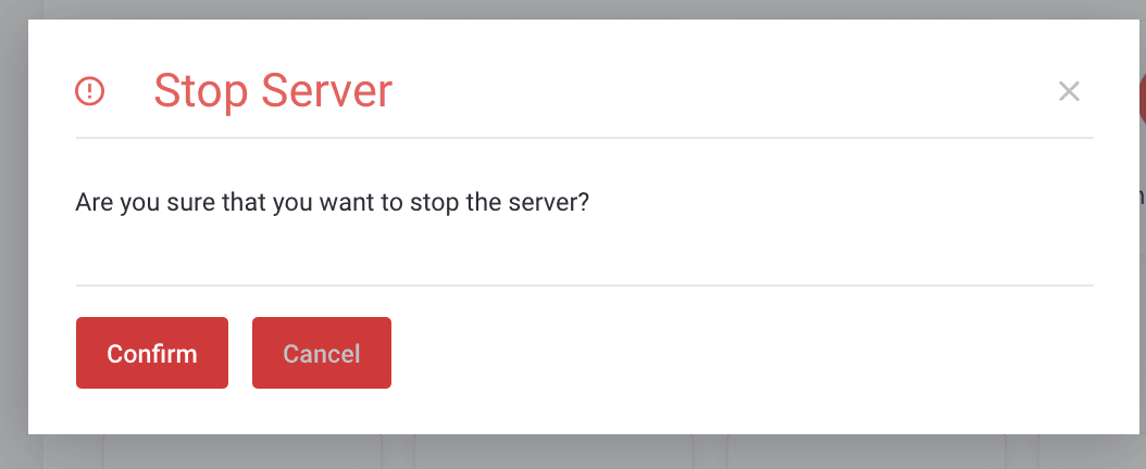 To turn on the server, you click on the Start action, then a message pops up asking if you are sure to start the server, click Confirm.