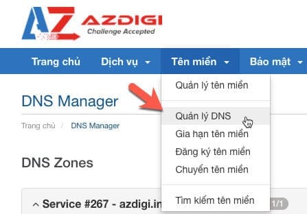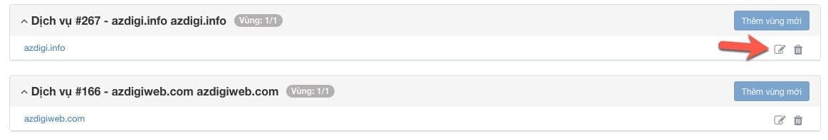 For domain names registered at AZDIGI, the system has already created a DNS zone for that domain name, you can click the button to edit the DNS zone of the domain name to be edited.