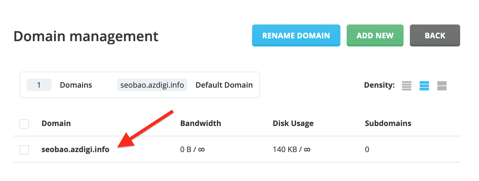 In this section, click on the domain you need to change the IP address.