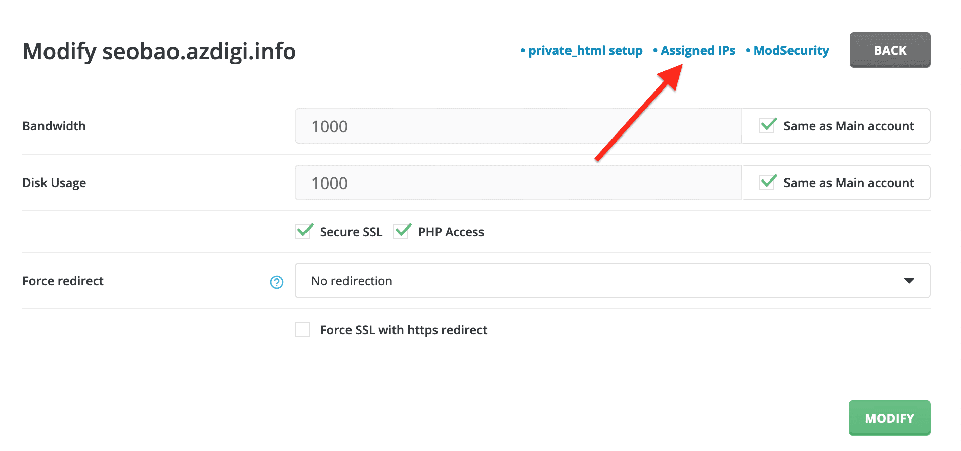 Step 2: Change website IP on SEO Hosting package