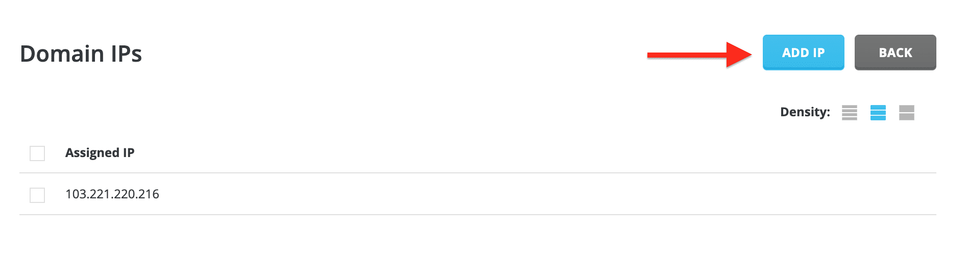 Here, you will see the default IP of that domain. To change IP, you need to click the ADD IP button.