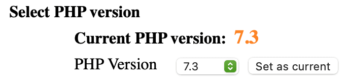• Red frame: After you have selected the PHP version you like, click Set as current to set that PHP version as the default.