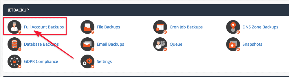 - Full Account Backups: Restore all data on the hosting package including File Manager, MySQL Databases, Email, DNS Zone, SSL certificate. When using this mode, the account will be temporarily locked during the data recovery period, so the website will be downtime.