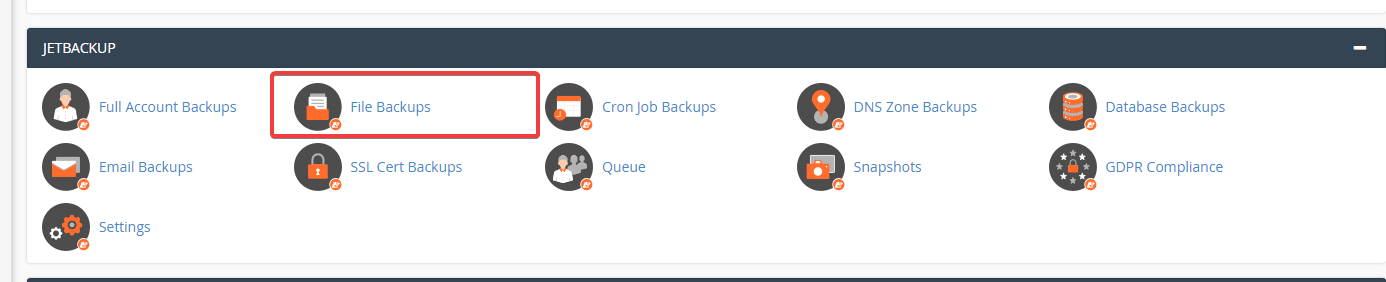 At the cPanel interface, go to JetBackup => File Backups