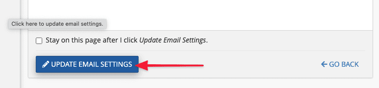 After entering, scroll down and click on Update Email Settings to apply the changes.