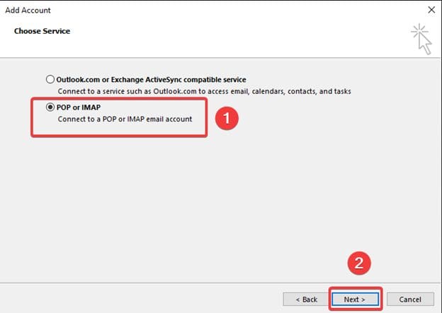 Step 4: Choose POP or IMAP