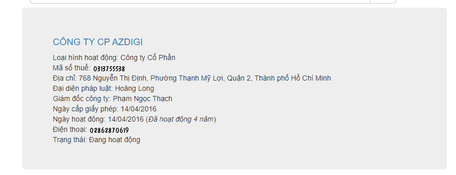 For example, AZDIGI Joint Stock Company has been declared with the information as below:
