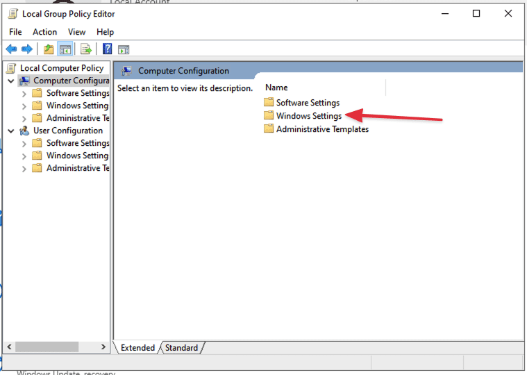 In “Computer Configuration”, select “Windows Settings”