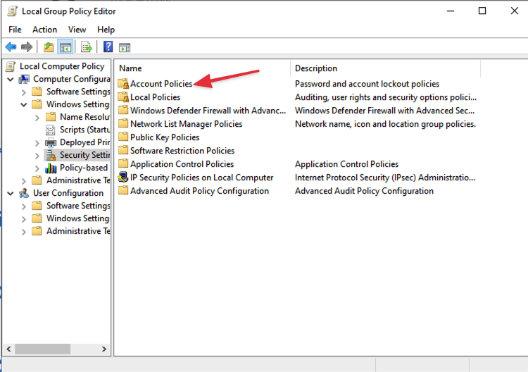 Then, select “Account Policies”