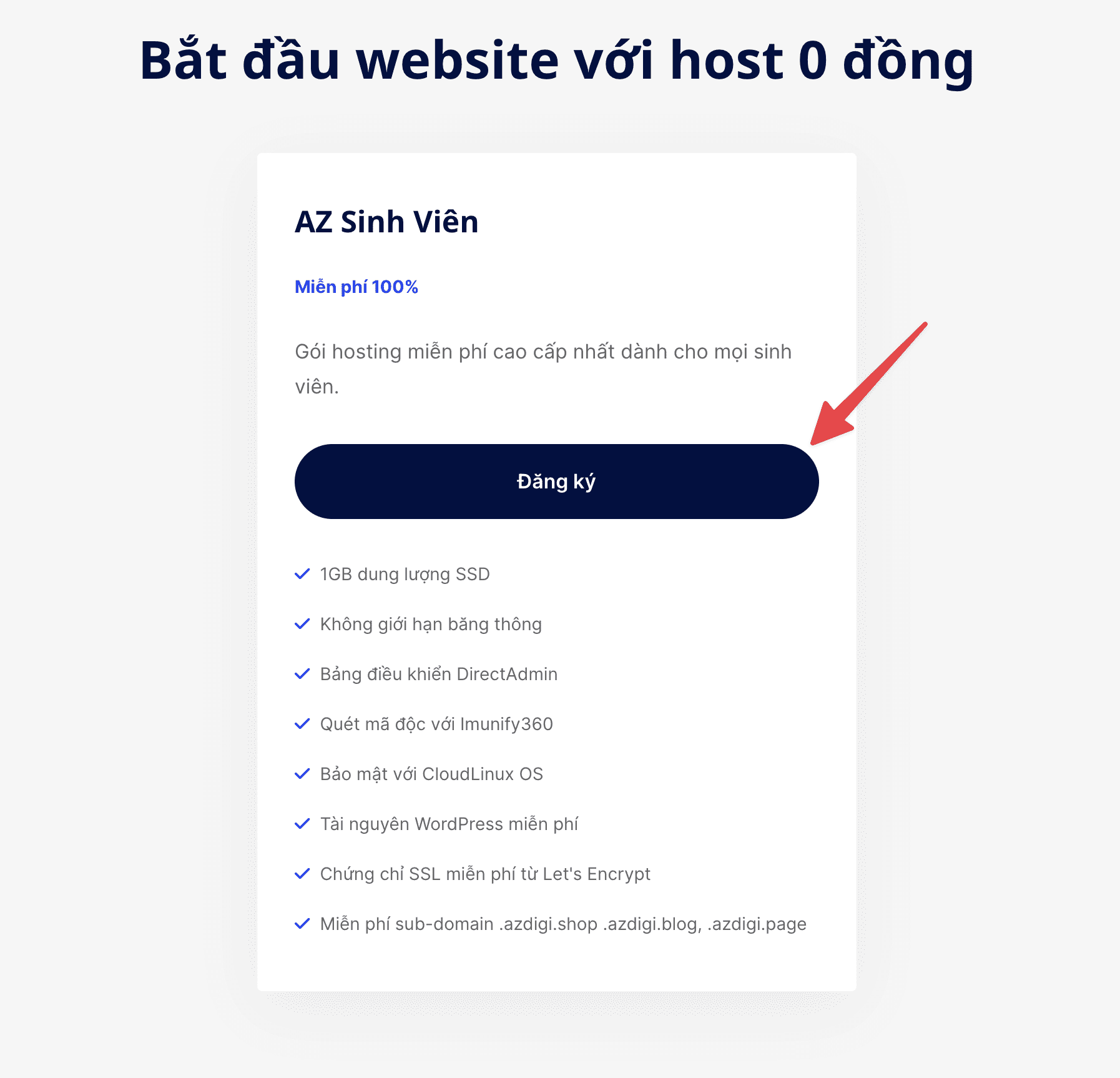For the free host package to be used for the proper purpose, contributing to protecting the quality of the service, AZDIGI only provides the free hosting package according to the following regulations: