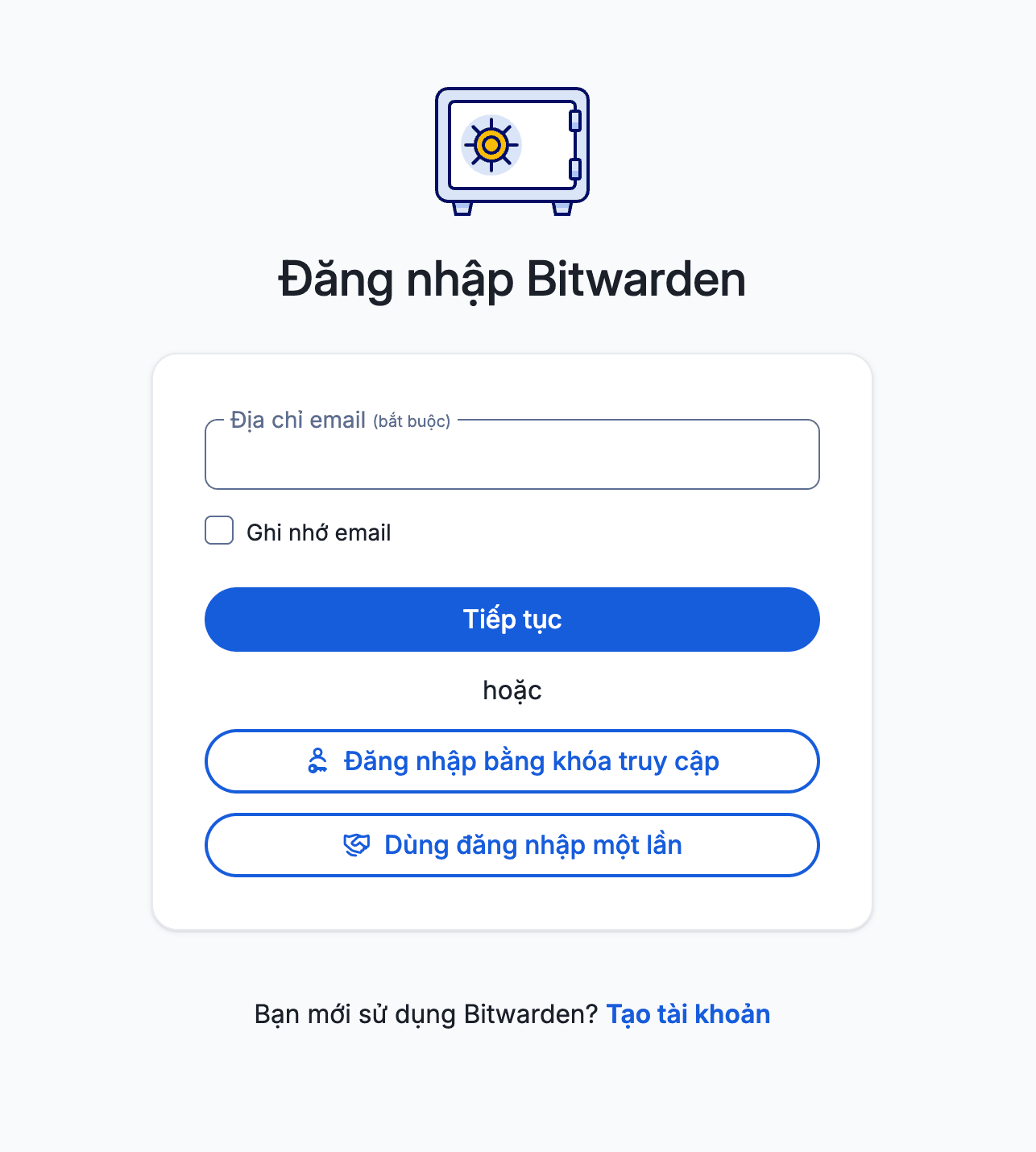 After completion, you access the domain configured for Bitwarden to start using. On the first access, the system will display the new account creation interface.