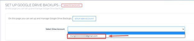 At the CyberPanel interface, go to theBack up => Setup Google Drive => Select Drive Account section, select the correct account that was previously configured.