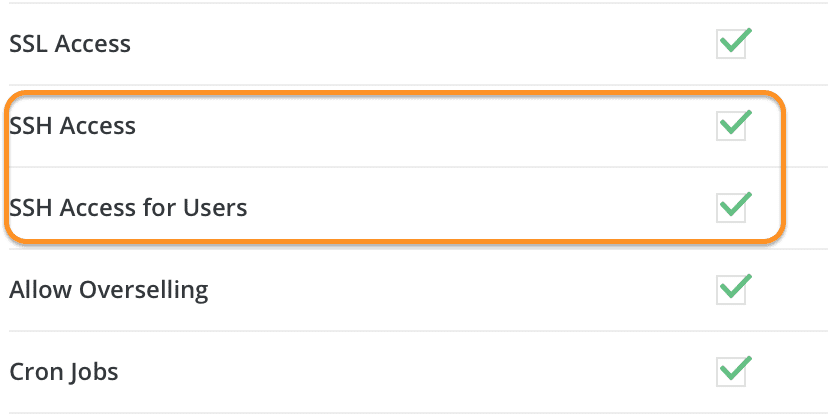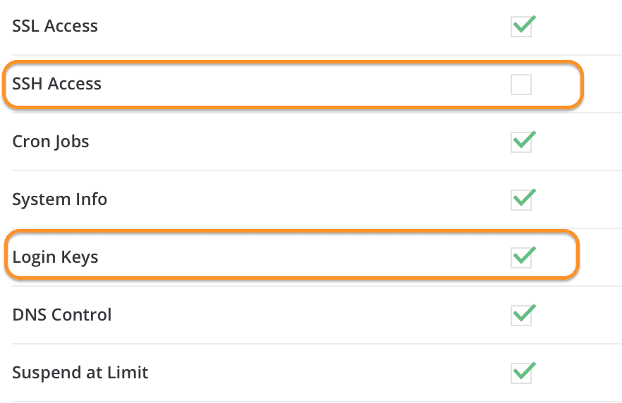 - SSH Access for Users: allows reseller accounts to enable SSH for those who belong to that reseller.
