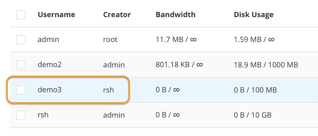 In this section, you select the details of the user who needs to enable the SSH feature. For example, I will choose a User named demo3 of a reseller named rsh.