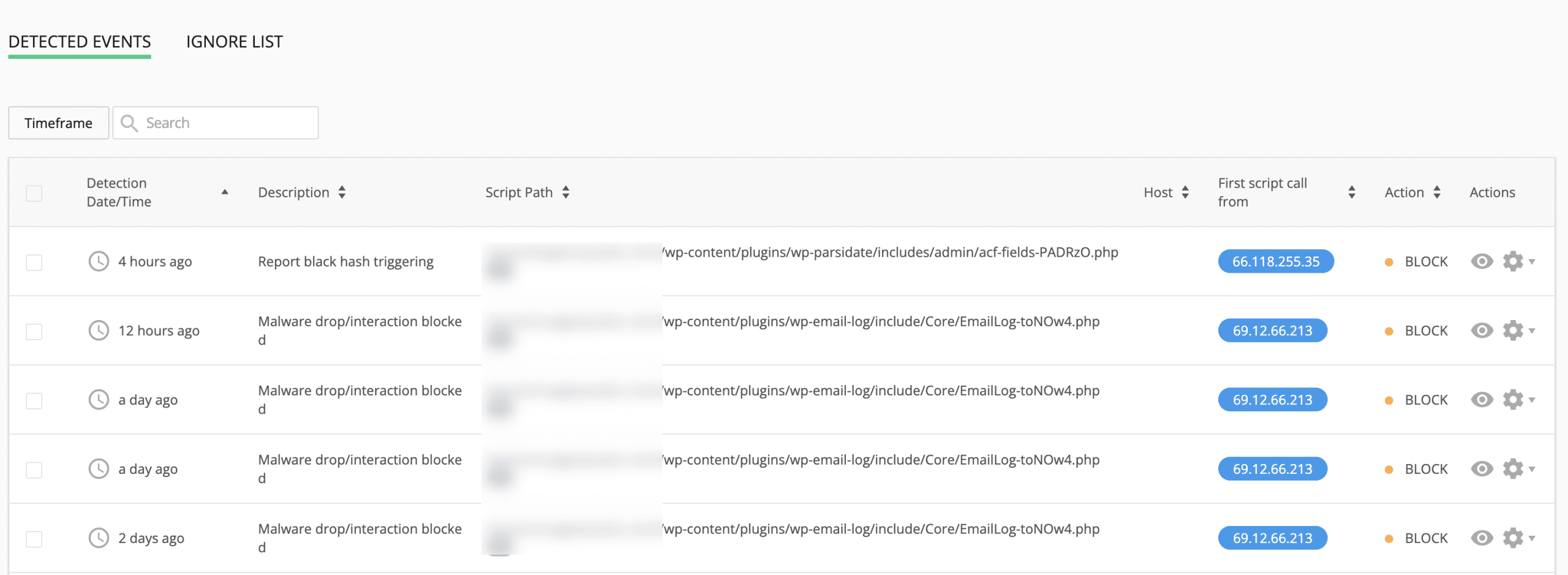 When malicious code already exists in the source code but for some reason has not been removed, Imunify360 also has a second layer of protection that is to prevent PHP code from being executed abnormally on the server. Every time it detects that a PHP code is executed, Imunify360 will conduct an analysis and will block execution if an anomaly is detected.