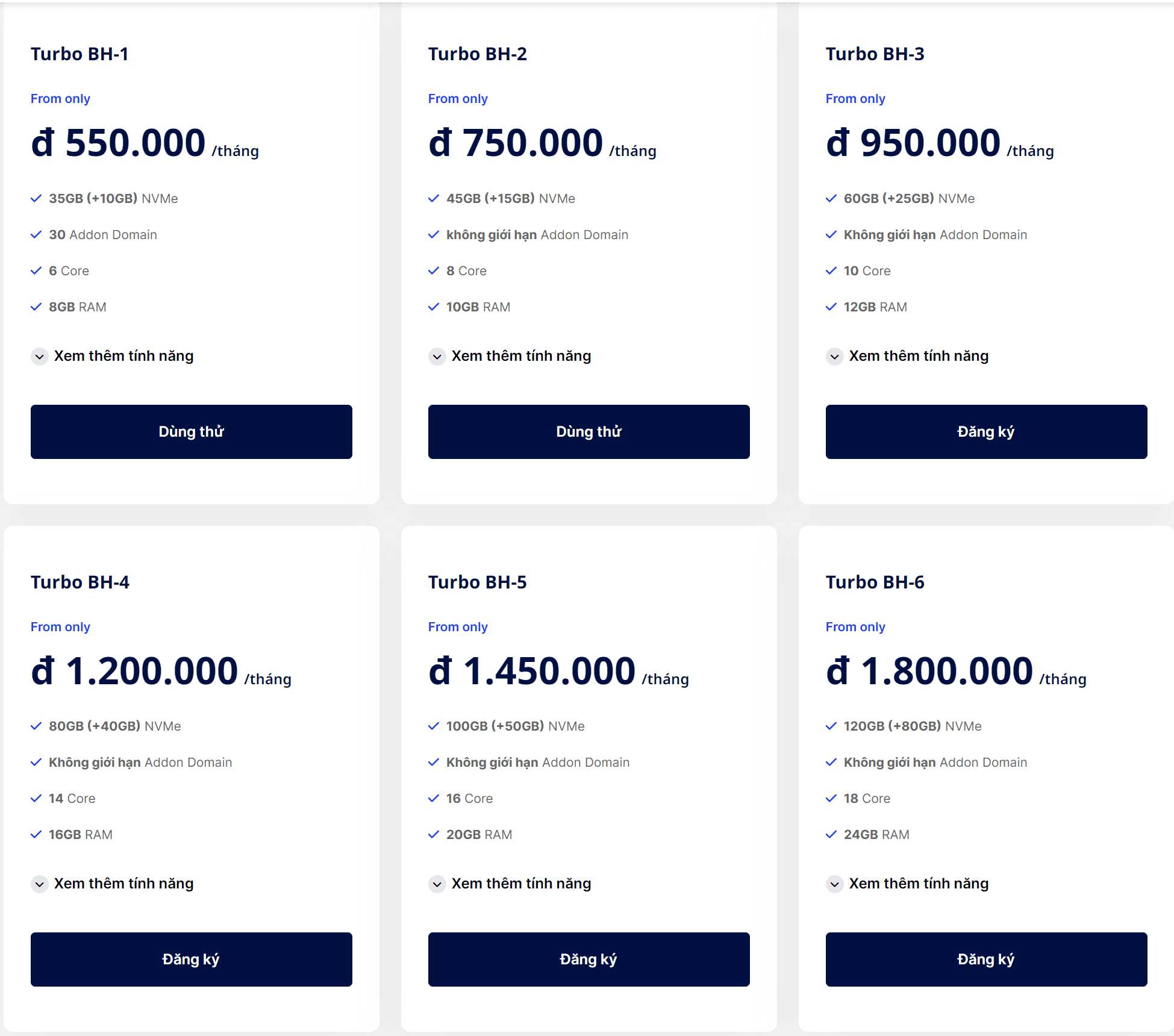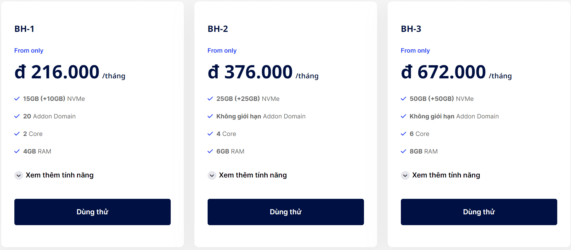 This is a high-end hosting service designed to serve businesses. This service utilizes powerful hardware and cost optimization, with prices starting from 239,000 Vietnamese Dong per month.