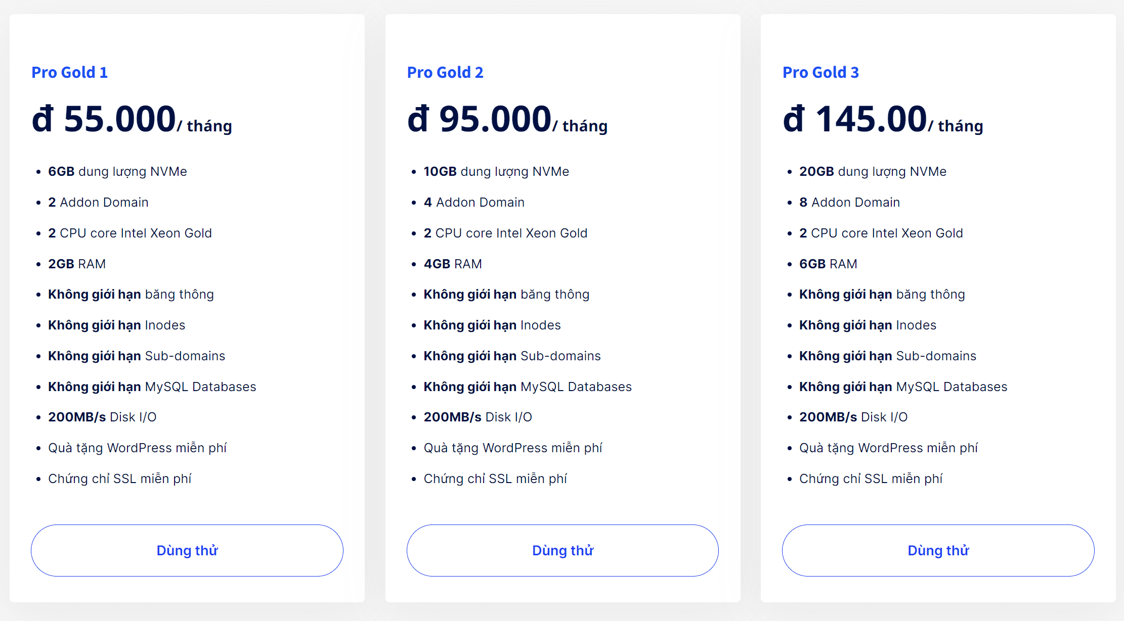 Pro Gold Hosting is not only a powerful improvement in the field of hosting in Vietnam but also sets a new standard for quality in the sustainable development of Vietnamese websites. With the power of the Intel Xeon Gold processor, cost savings, NVME U.2 RAID 10 hard drive, LiteSpeed Webserver technology, the latest cPanel control panel, CloudLinux OS operating system, and integrated Imunify360 Anti-Virus, Pro Gold Hosting promises to provide the best website hosting service experience for every customer.