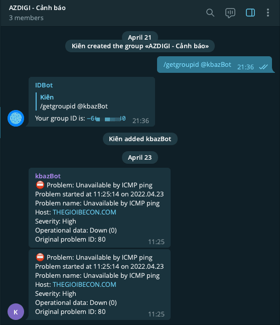 So AZDIGI has completed the steps on setting up Zabbix alerts via Telegram. If you have any questions during the process, you can leave a comment below. Hopefully, this article will help you and next time AZDIGI will continue to write more articles about Zabbix so that you can better understand how to use and operate Zabbix.