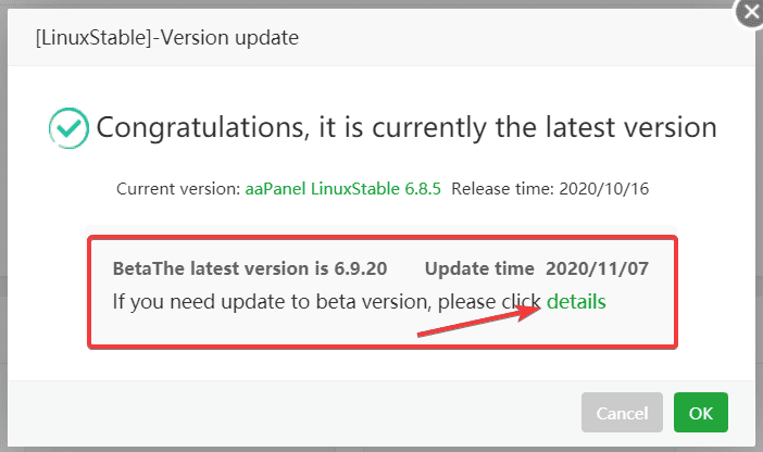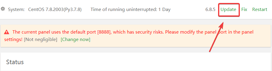 Step 2: Update the version of aaPanel