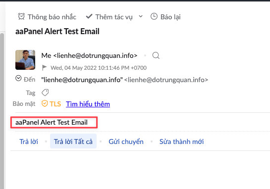 When the setup is complete, you will receive an email with the results you just set up. Thus, setting up notifications with Email on aaPanel has been completed.