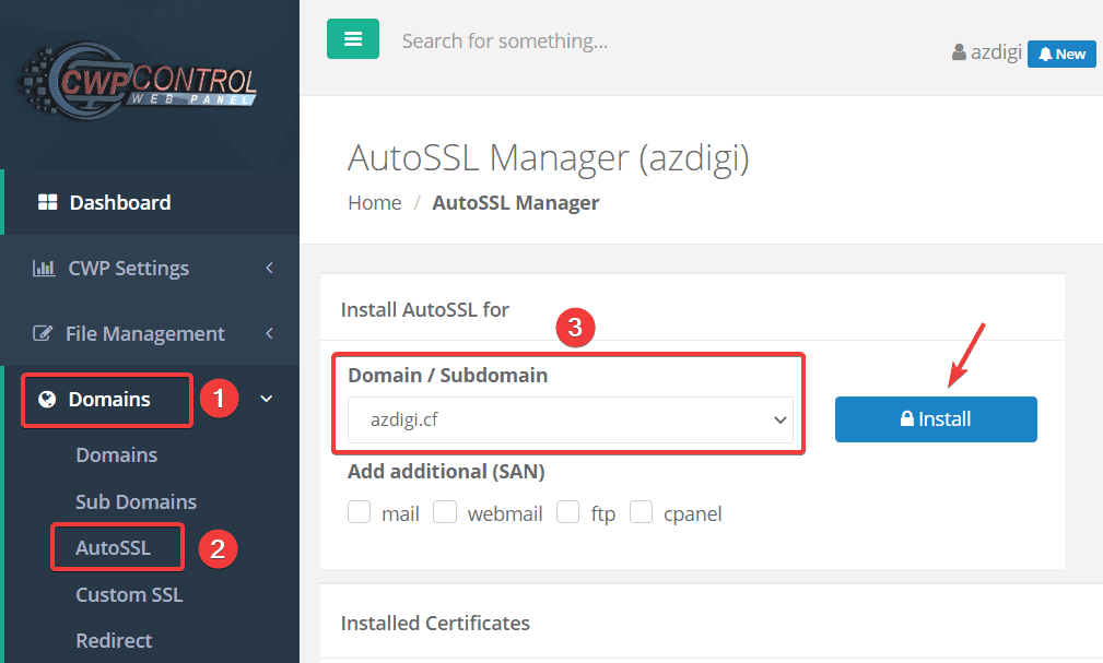 In this article, AZDIGI will guide you on installing Let’s Encrypt SSL certificate on your website using Centos Web Panel (CWP) control in the simplest and fastest way, please follow along.