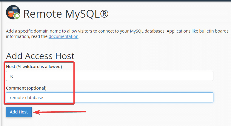First, go to cPanel => find the Remote MySQL section.