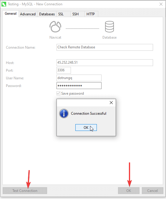 Next, click Test Connection to check the connection and click OK to save.